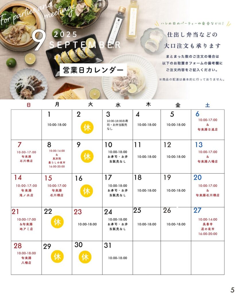 定休日:火曜日(水曜日は調味料・お菓子の販売のみ)