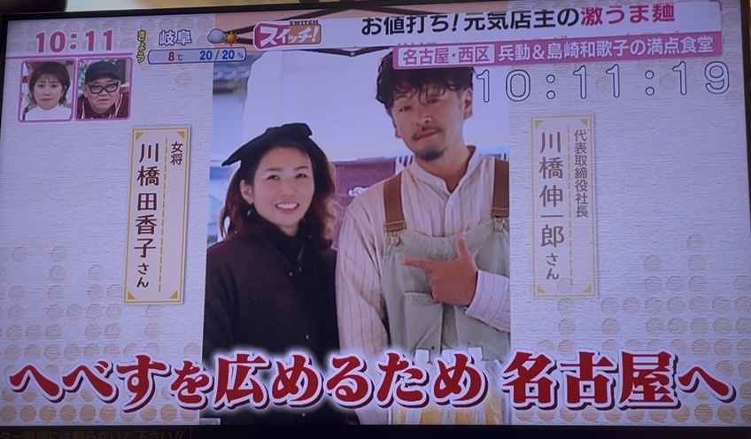前回のブログで書かせて頂きましたが我らが「ハレのひむか」東海テレビ「スイッチ」内の人気コーナー:兵藤大樹の満点食堂にて紹介して頂きました。